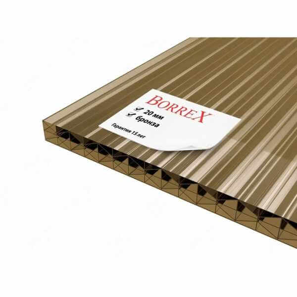 Сотовый поликарбонат 20 мм BORREX бронза 2100х12000 мм