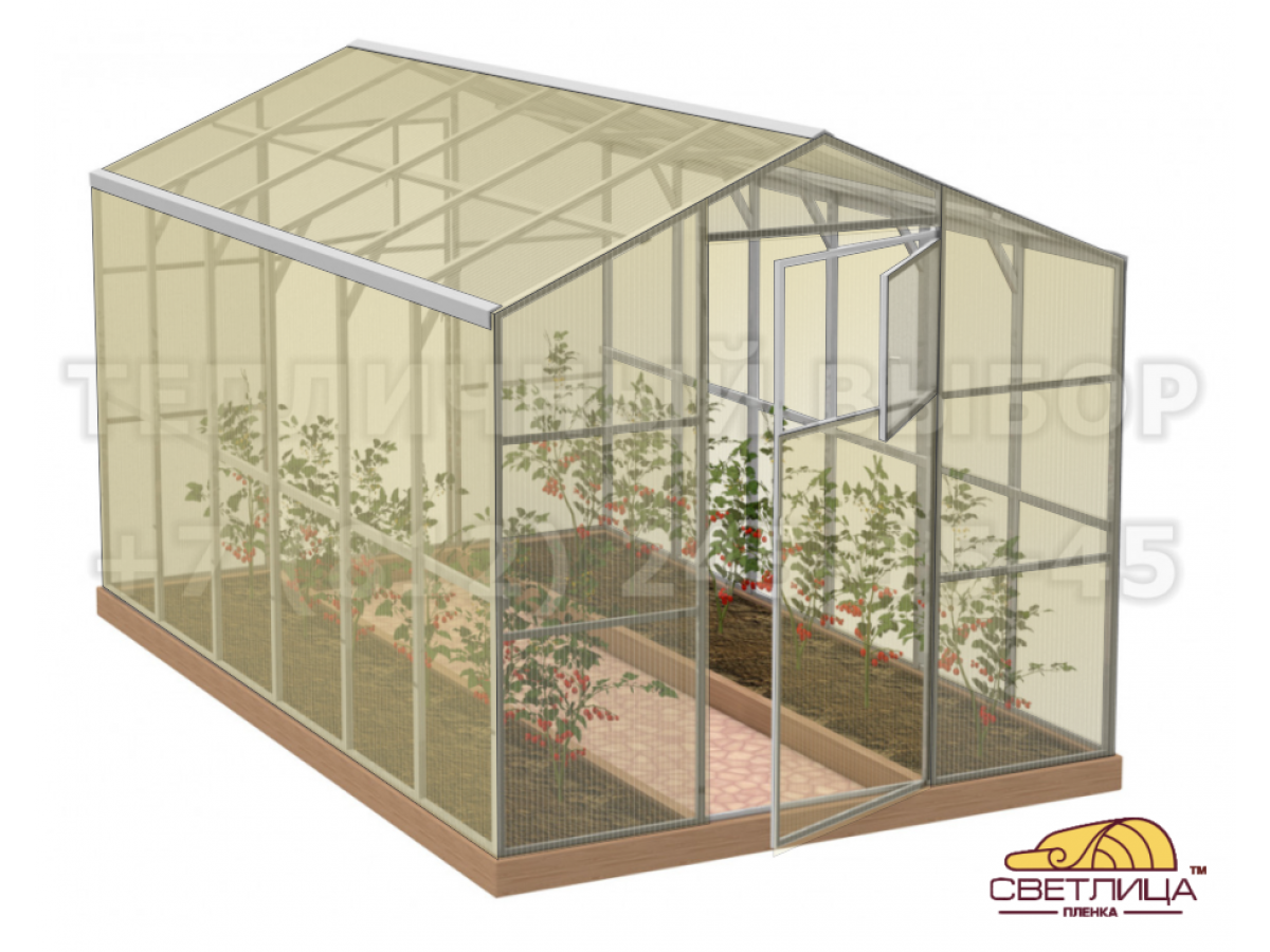 • укрывной материал - легендарная пленка «Светлица» толщиной 150 мкм, имеет уникальный состав, который делает ее прочной, эластичной и долговечной (не менее 7 лет без снятия на зиму);